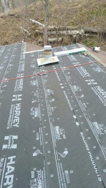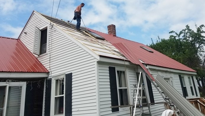 Description: Metal roof being installed in Wilton Maine. |